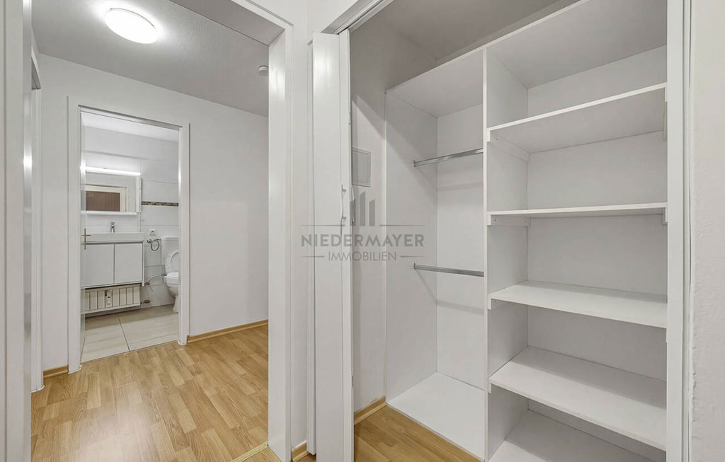 Die Einbauküche ist mit Geschirrspüler, Kühlschrank, Herd und Backofen ausgestattet. Das modern geflieste Badezimmer verfügt über eine Dusche, einen Handtuchheizkörper sowie einen Waschmaschinenanschluss. Eine separate Abstellkammer mit Schiebetür in der Diele bietet zusätzlichen Stauraum. Abgerundet wird dieses attraktive Angebot durch ein Kellerabteil sowie einen Einzelstellplatz in der Tiefgarage mit direktem Hauszugang.