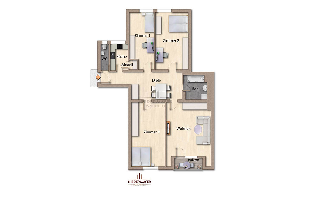 Im 3. OG eines sehr gepflegten Mehrfamilienhauses und bequem über den Aufzug erreichbar, öffnet