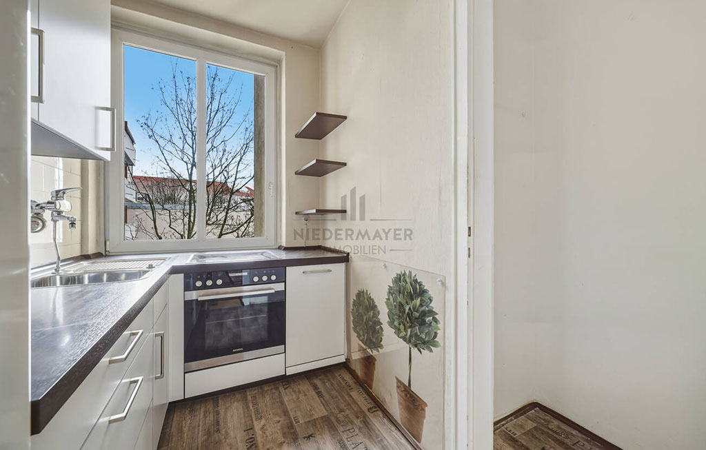 Die Küche ist derzeit separat gelegen, was Ruhe und Ordnung bietet. Wer jedoch Lust auf ein